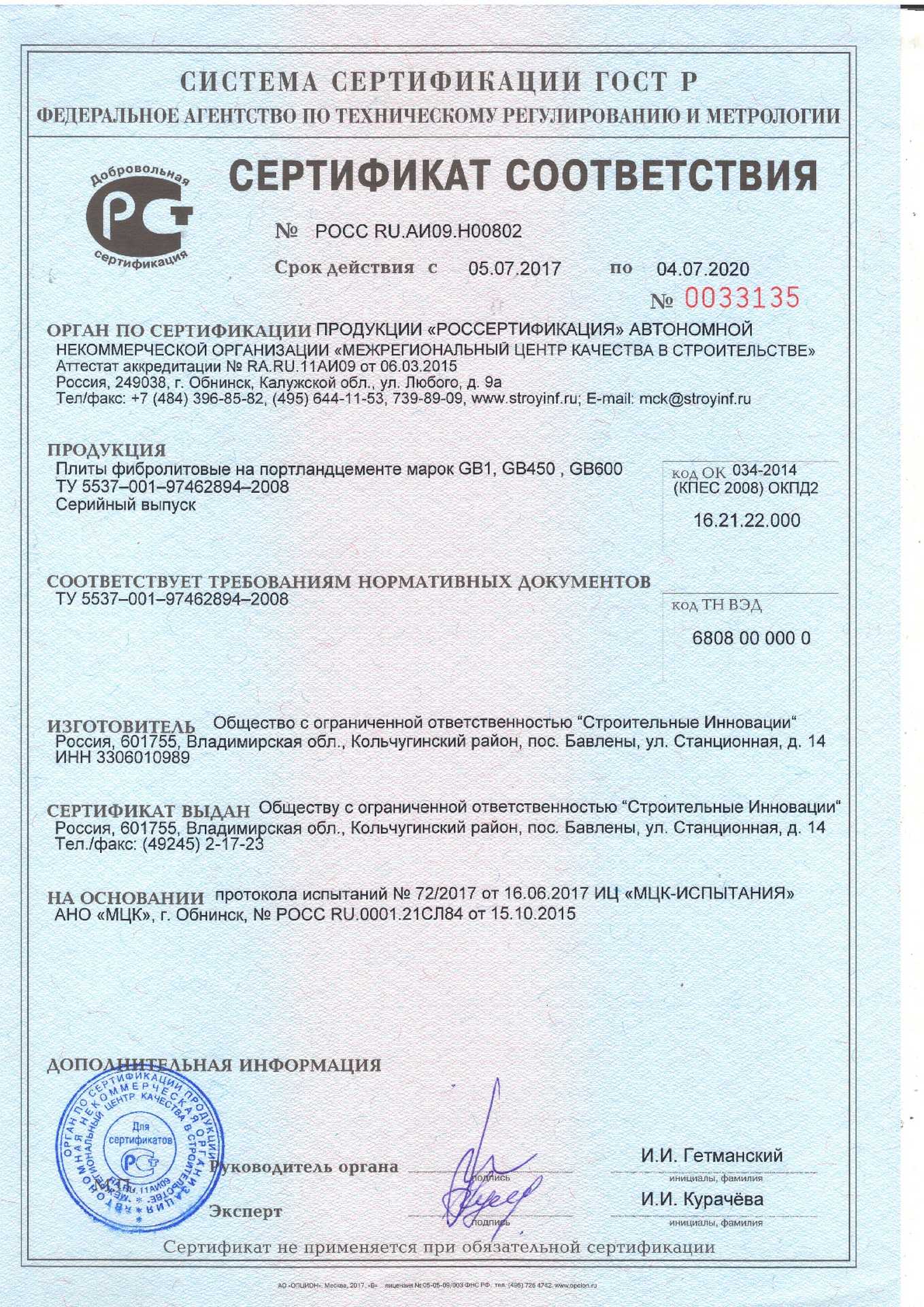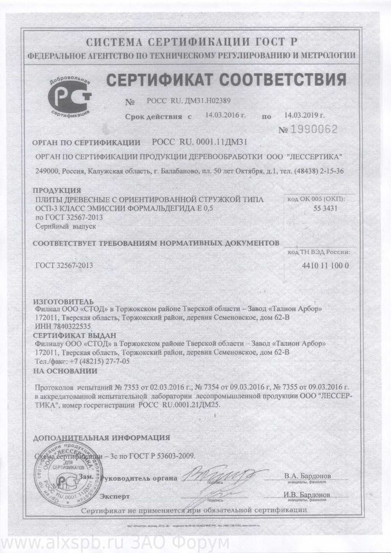 Сертификаты плитных материалов